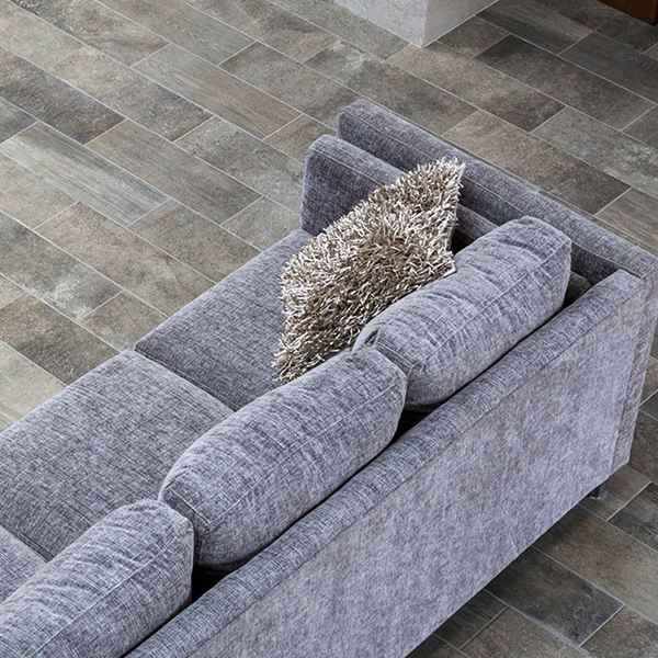 Piso Tipo Dalgres de Modelo GPF4, con Formato de 18x50 cm. Diseño Tipo Piedra Natural y Madera de Variación Media y Acabado Mate. Aplicación para Interior y Exterior en Zona Residencial o Comercial de Alto Tránsito (PEI IV).