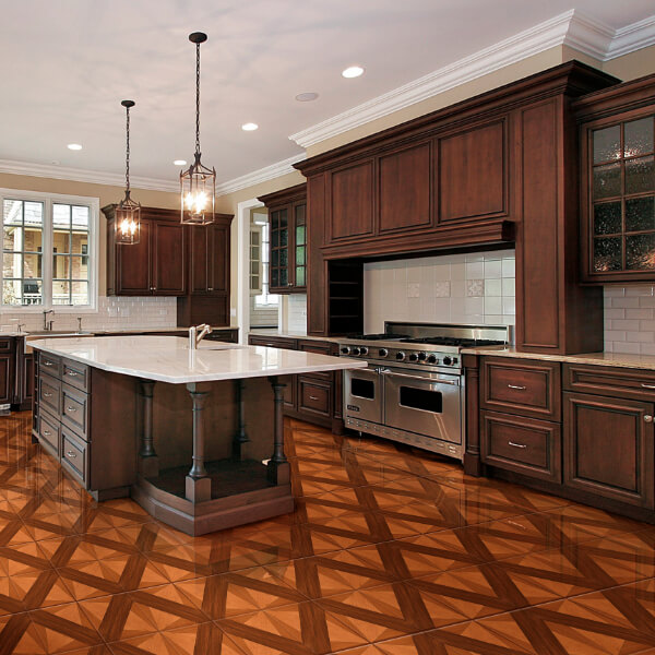 Piso Tipo Cerámico con Formato de 44x44 cm. Diseño Tipo Madera y Acabado Brillante. Aplicación para Interior.