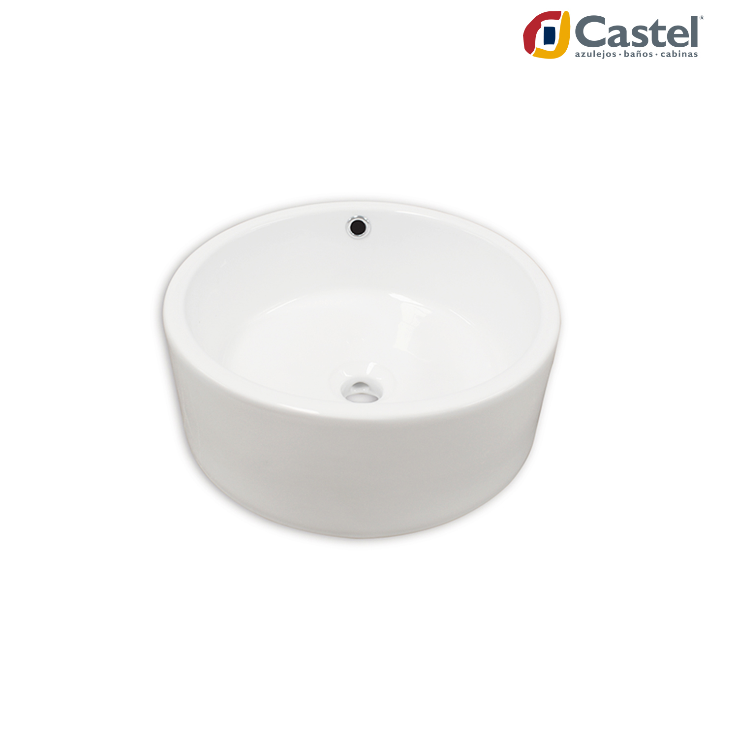 Lavabo Cerámico Sobrepuesto de Válvula con rebosadero. Medida de diámetro 41.5 cm y alto 16.5 cm.
