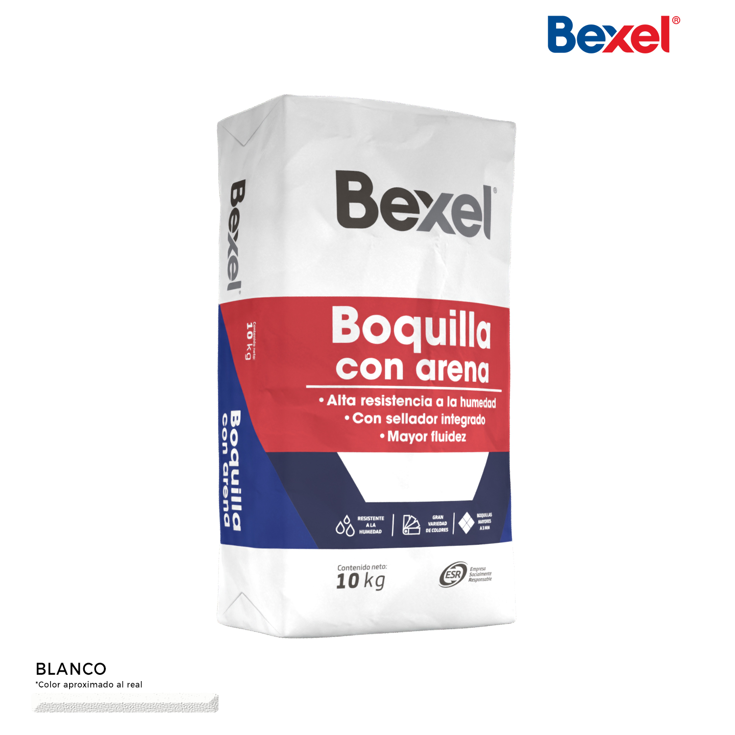 Emboquillador con Arena, formulado con Agregados Silíceos o Calcáreos, Aditivos Químicos Selectos, Agentes Hidrofóbicos y Pigmentos de Gran Estabilidad; con Presentación en Saco de 10 kg.